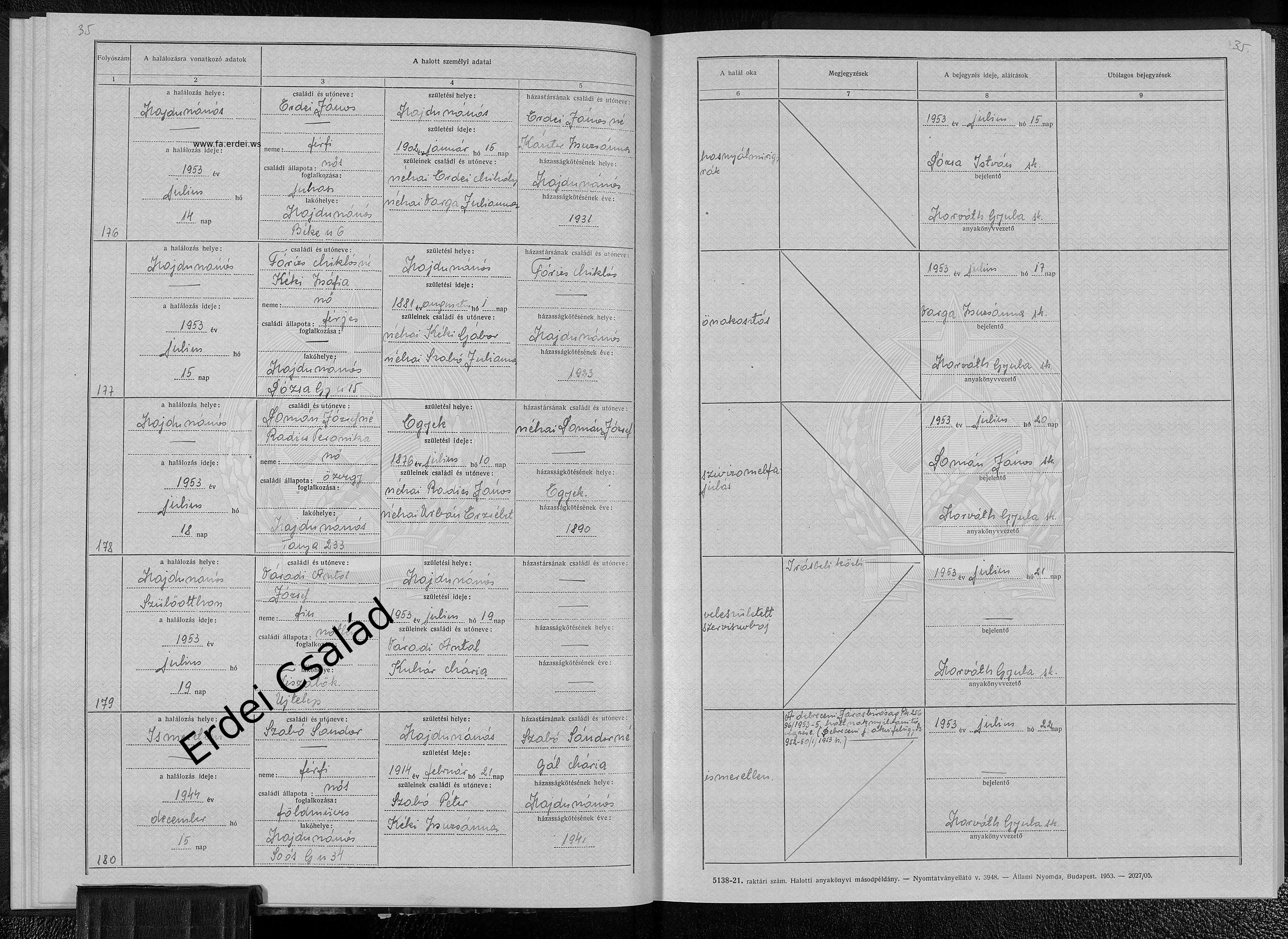 | Lánygyermek születése #1 | Katalin Erdei 1933. január 01. (Életkor 30 év) |