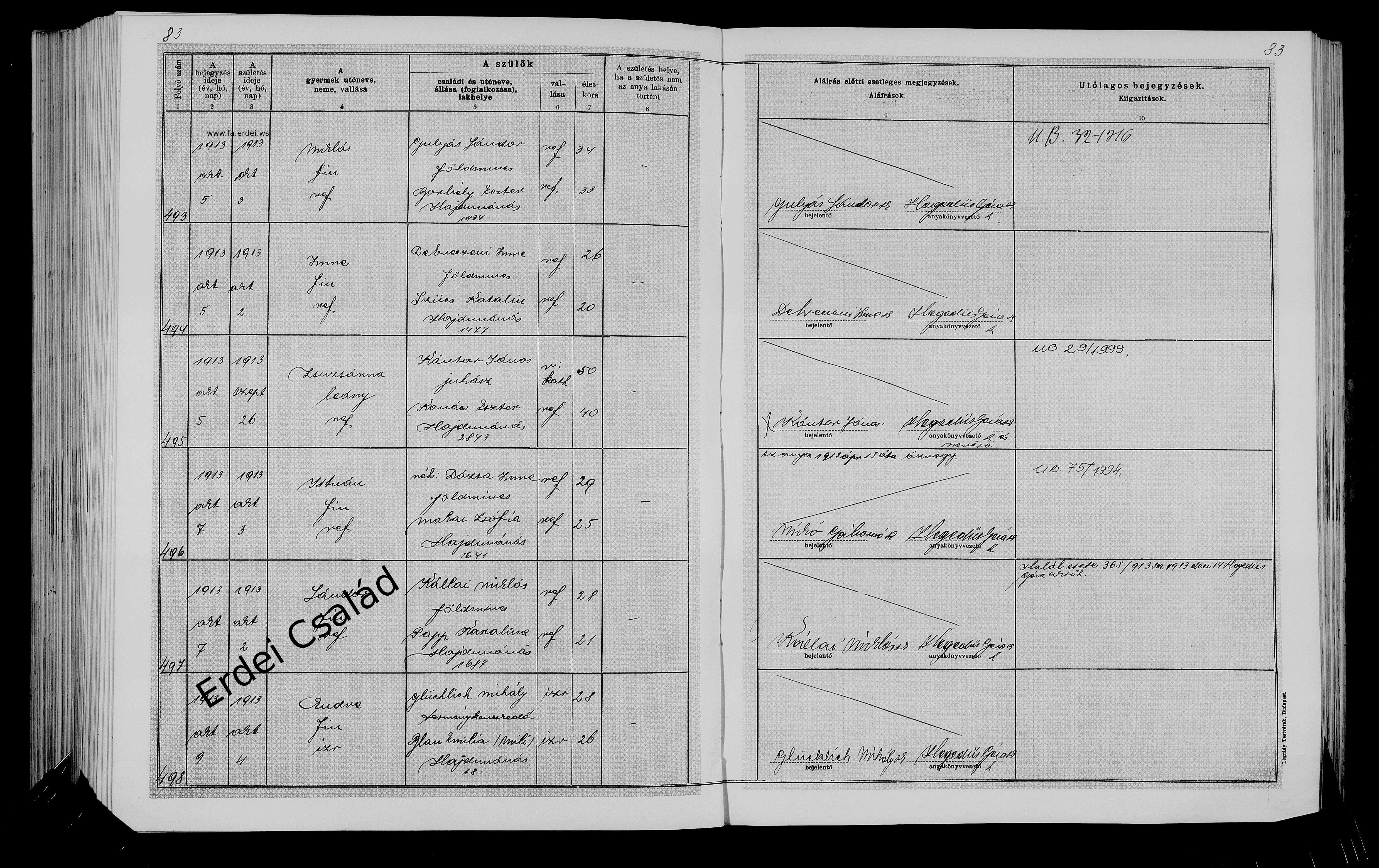 | Lánytestvér születése | Erdei Sára 1911 (Életkor 8 év) |